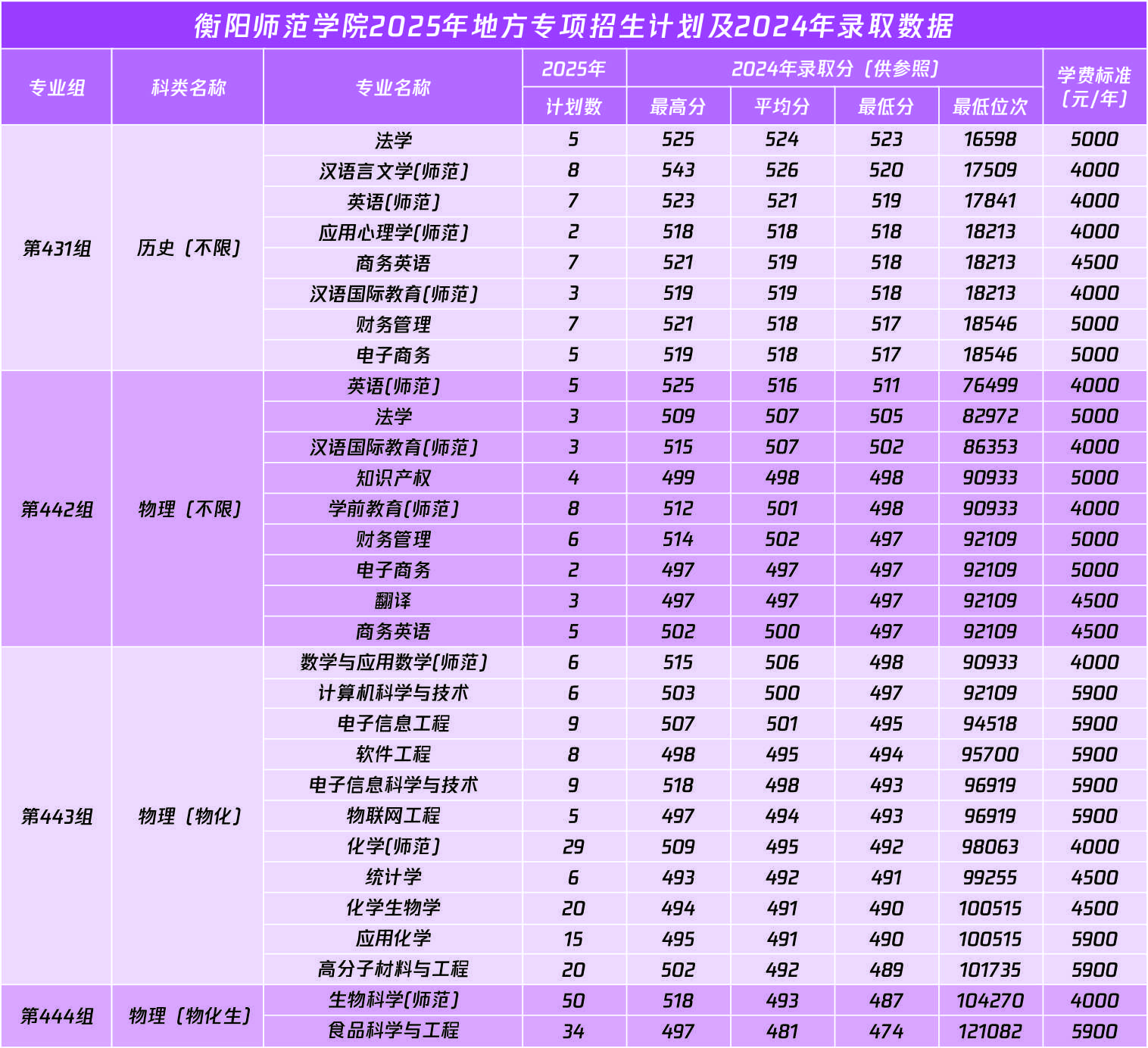 湖南省地方农村专项计划安排在本科批录取。